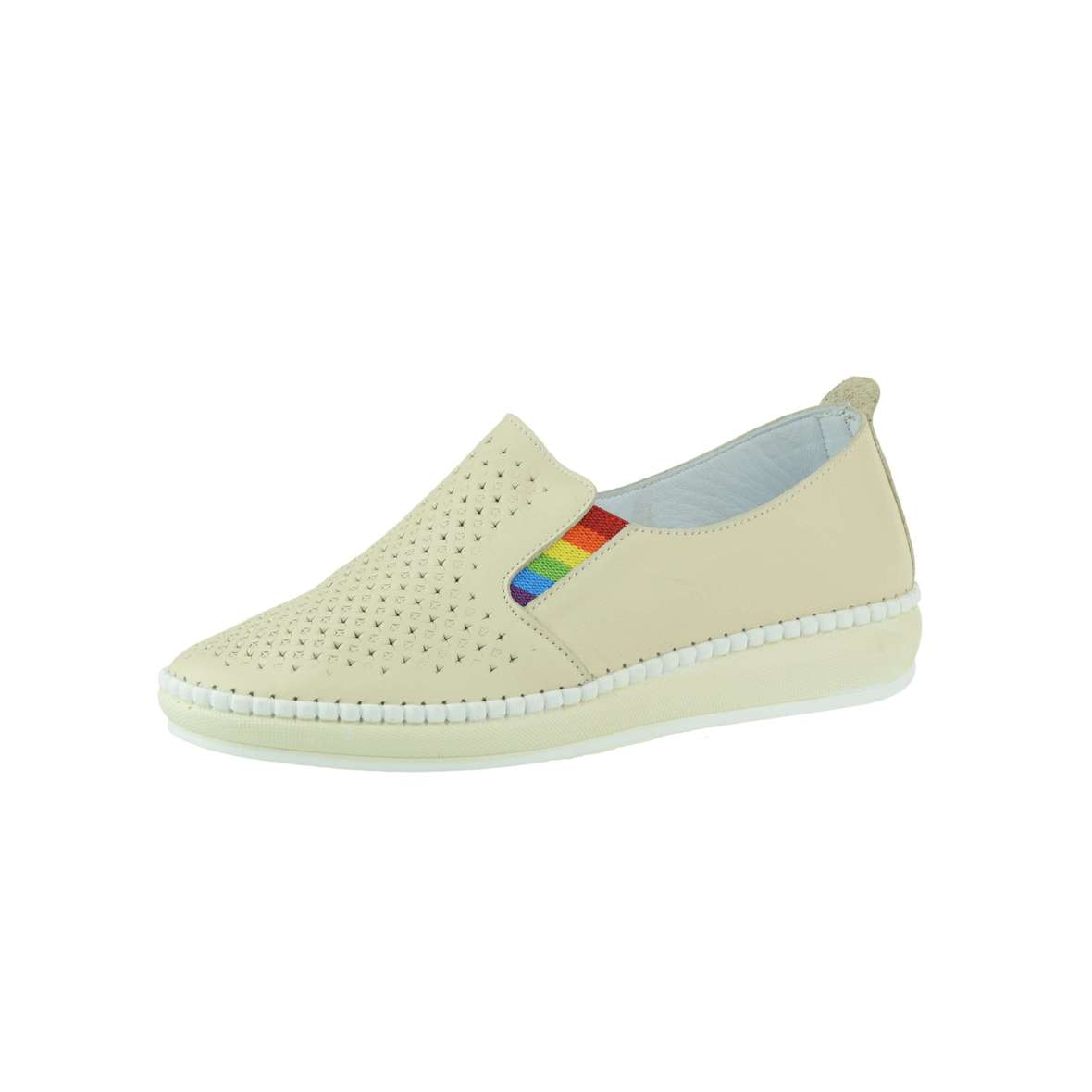 Dámské kožené mokasíny s vsazenými gumickami po stranách pro jednoduché obutí. Stélky s prvky pro podporu podélné klenby.